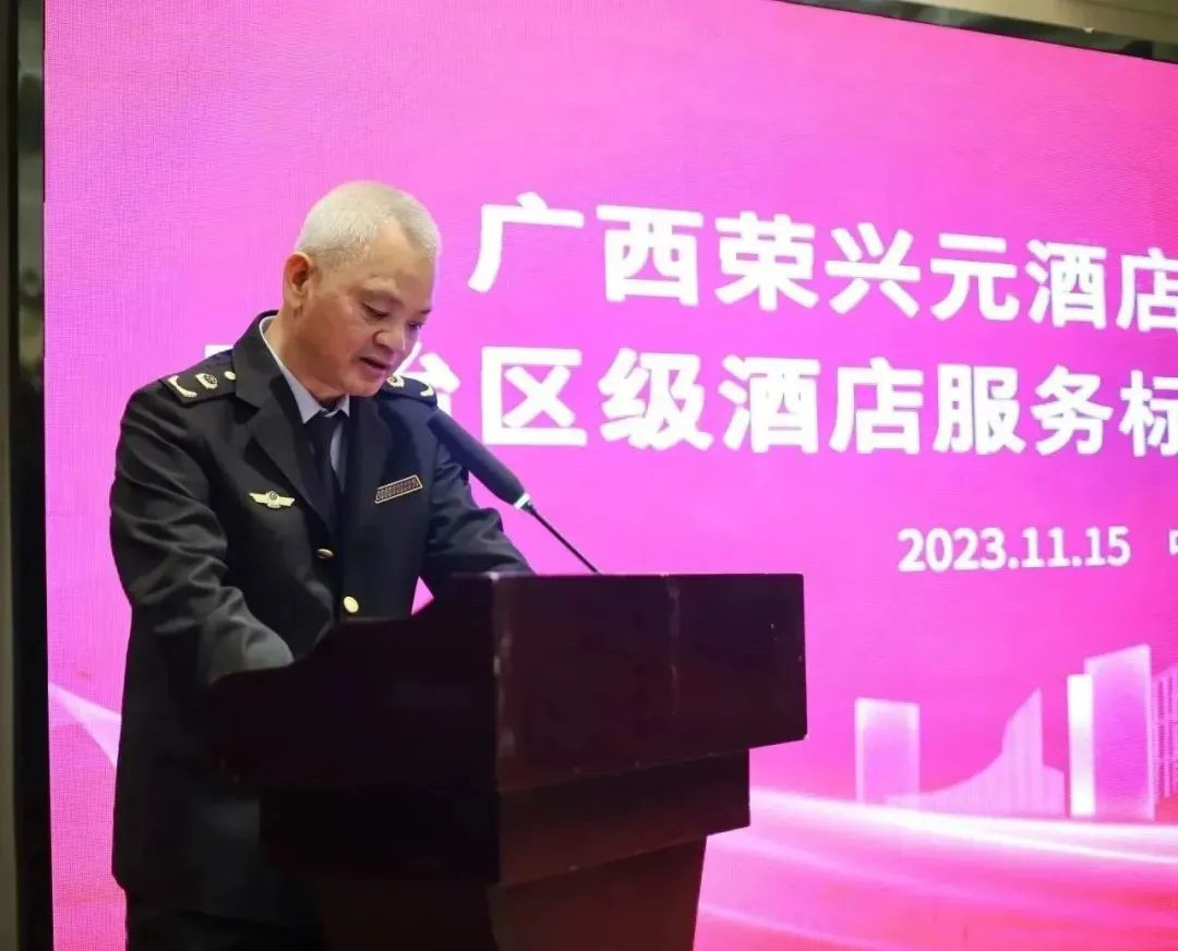2023年11月15日,廣西榮興元酒店管理有限公司自治區(qū)級酒店服務(wù)標(biāo)準(zhǔn)化試點(diǎn)啟動儀式在防城港市榮興格朗大酒店召開。防城港市市場監(jiān)督管理局副局長戴大雄、標(biāo)準(zhǔn)化科科長李燕,防城港市商務(wù)局內(nèi)貿(mào)二科科長潘培技、接待二科科長盧柏如,港口區(qū)市場監(jiān)督管理局副局長譚韓柳,港口區(qū)商務(wù)和口岸管理局內(nèi)貿(mào)股股長閉奕林,防城港市前程無憂職業(yè)培訓(xùn)學(xué)校校長鄭小潔、廣西國色消防公司總經(jīng)理鐘如述,廣西榮興元集團(tuán)總裁鄧平、駐店總經(jīng)理張經(jīng)緯、副總經(jīng)理王美玉等出席活動。