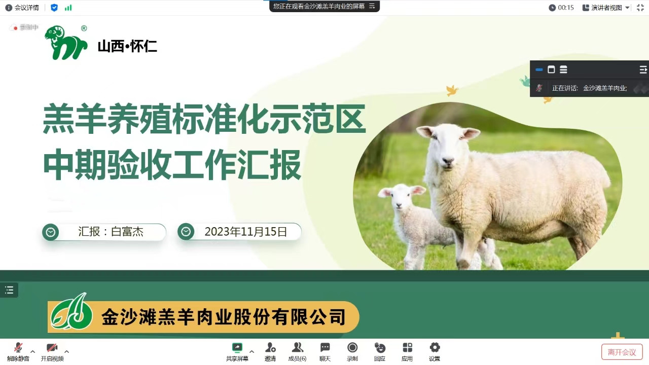 2023年11月15日,羔羊養(yǎng)殖標(biāo)準(zhǔn)化示范區(qū)年度考核評(píng)估會(huì)以網(wǎng)絡(luò)會(huì)議形式召開??己嗽u(píng)估小組組長(zhǎng)由山西省市場(chǎng)監(jiān)督管理局標(biāo)準(zhǔn)管理處副處長(zhǎng)李昆擔(dān)任,考核組成員由農(nóng)業(yè)和標(biāo)準(zhǔn)化領(lǐng)域?qū)<医M成。 懷仁市市場(chǎng)監(jiān)督管理局黨組成員王肇清、標(biāo)準(zhǔn)化股徐巧紅出席會(huì)議,懷仁市金沙灘羔羊肉業(yè)股份有限公司副總經(jīng)理白富杰、質(zhì)量部經(jīng)理李旭東、辦公室主任石增蓮參加會(huì)議。