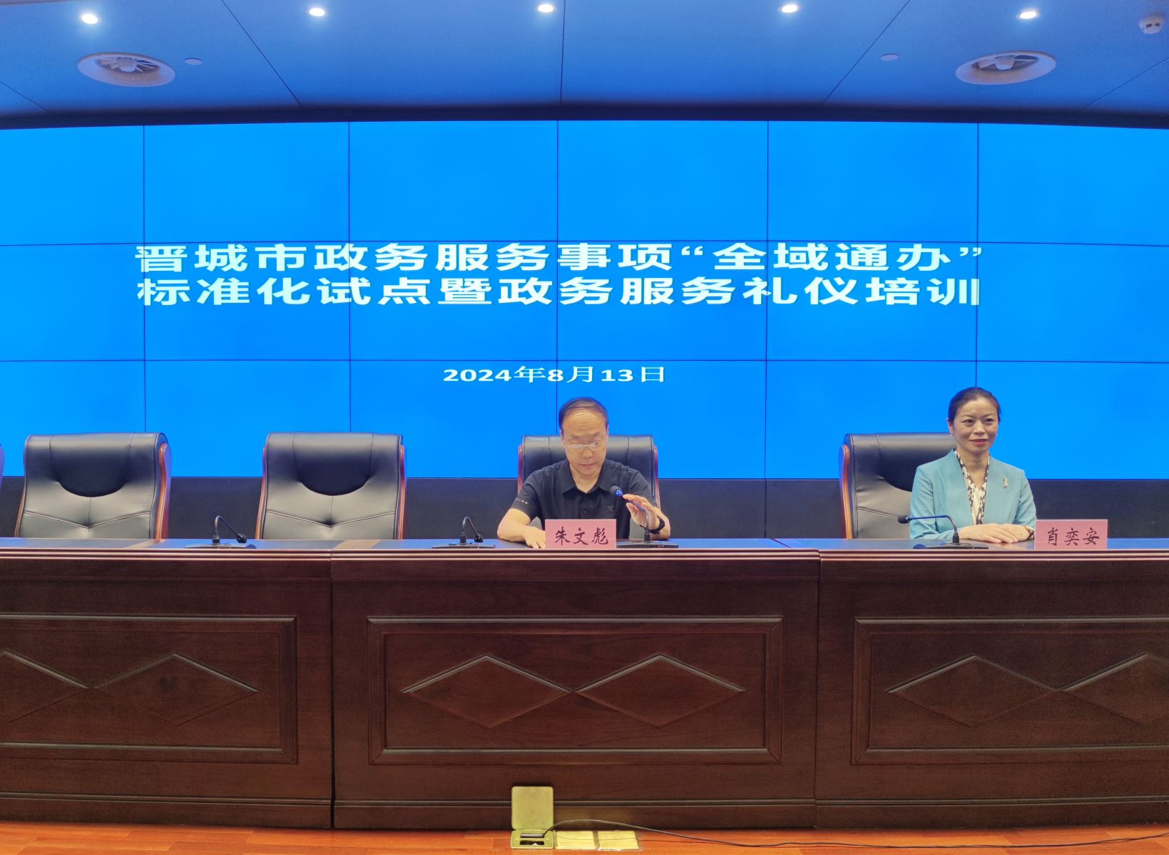 為持續(xù)推進(jìn)晉城市政務(wù)服務(wù)事項(xiàng)“全域通辦”標(biāo)準(zhǔn)化建設(shè),進(jìn)一步規(guī)范窗口服務(wù)行為,提升政務(wù)服務(wù)能力,2024年8月13日,晉城市政務(wù)服務(wù)中心組織各入駐窗口單位及業(yè)務(wù)科室工作人員開(kāi)展政務(wù)服務(wù)禮儀培訓(xùn)。本次培訓(xùn)由晉城市政務(wù)服務(wù)中心四級(jí)調(diào)研員朱文彪主持,麥斯達(dá)夫禮儀培訓(xùn)特聘專(zhuān)家肖奕安進(jìn)行授課。