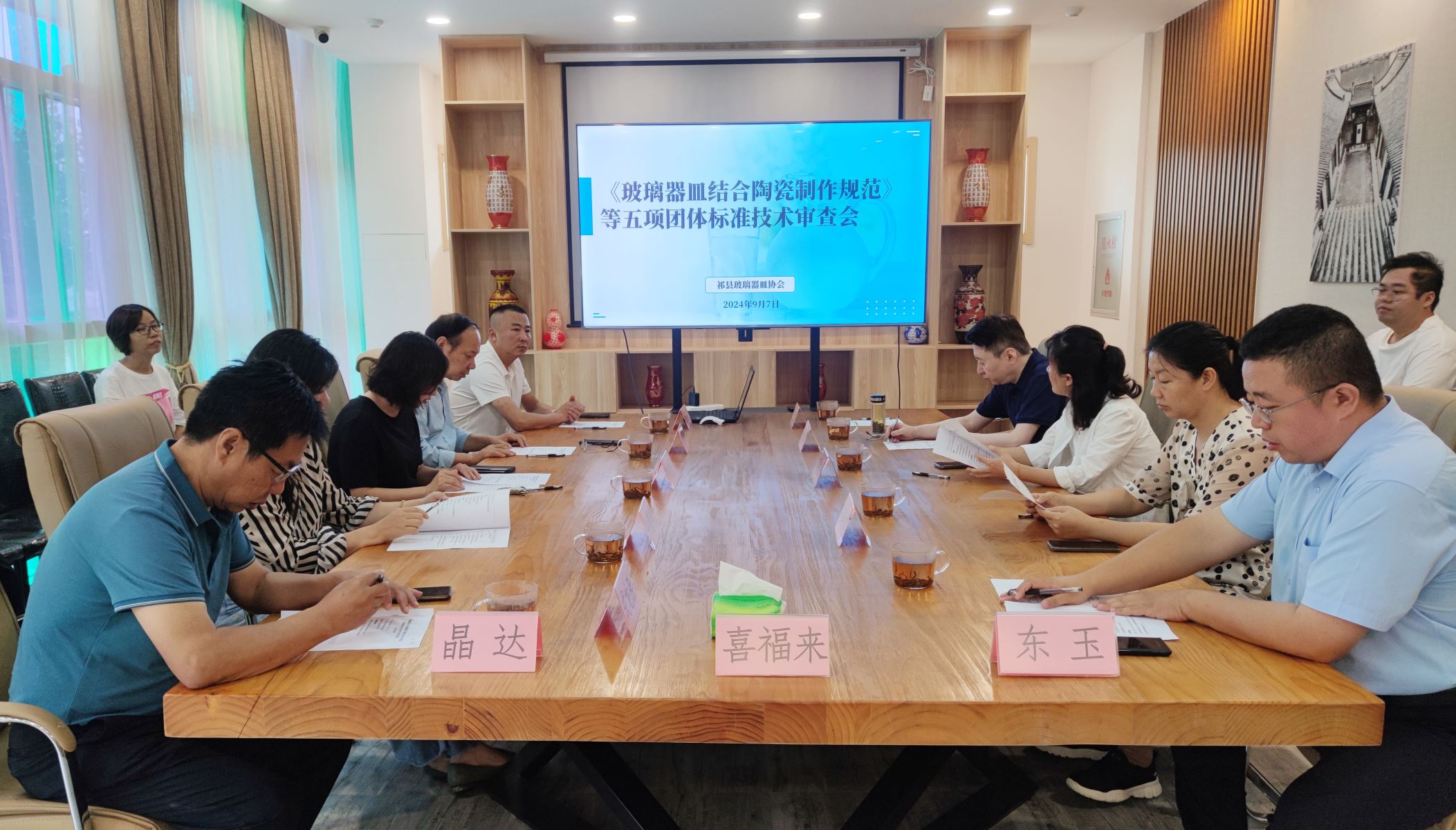 麥斯達(dá)夫標(biāo)準(zhǔn)化作為祁縣玻璃器皿協(xié)會(huì)系列團(tuán)體標(biāo)準(zhǔn)的技術(shù)支撐單位,王超、侯曉婷、李陽參加會(huì)議。