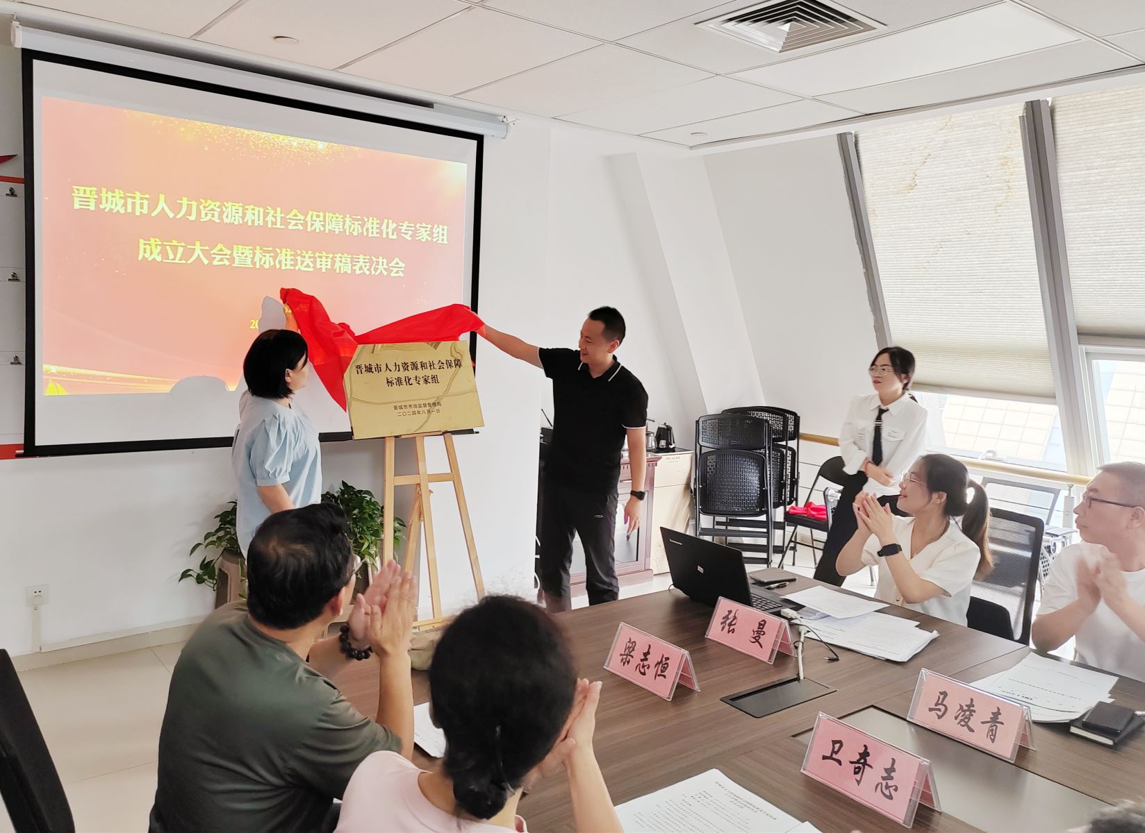 陳建峰、李保葉共同為晉城市人力資源和社會保障標(biāo)準(zhǔn)化專家組揭牌,標(biāo)志著晉城市人力資源和社會保障標(biāo)準(zhǔn)化工作正式啟航。