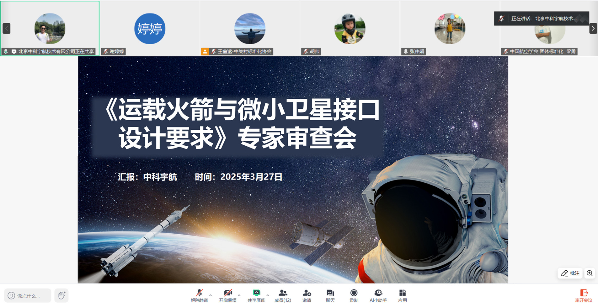 2025年3月27日,正值2025中關村論壇年會開幕之際,中關村標準化協(xié)會以線上會議形式組織召開《運載火箭與微小衛(wèi)星接口設計要求》等四項中關村標準審查會。來自中關村標準化協(xié)會、中國電子技術標準化研究院、中科寒武紀科技股份有限公司、中國航空學會、聯(lián)想(北京)有限公司的五名專家組成審查會專家組。會議由中關村標準化協(xié)會認定認證部主管王鑫邈主持。