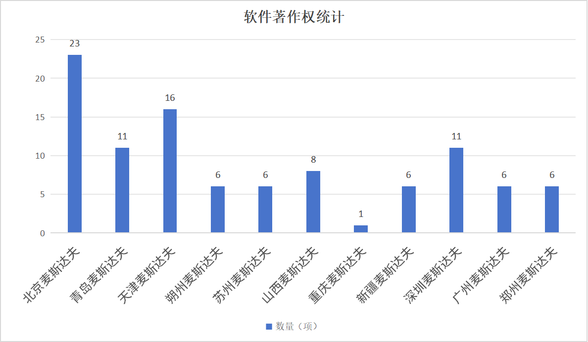 北京麥斯達(dá)夫憑借強(qiáng)大的研發(fā)實(shí)力,擁有23項(xiàng)軟件著作權(quán),涵蓋多語言異構(gòu)標(biāo)準(zhǔn)數(shù)據(jù)語義對(duì)齊系統(tǒng)、標(biāo)準(zhǔn)化成熟度數(shù)字孿生系統(tǒng)等多項(xiàng)技術(shù)領(lǐng)先成果;青島麥斯達(dá)夫獲批11項(xiàng)軟件著作權(quán),環(huán)衛(wèi)服務(wù)標(biāo)準(zhǔn)化系統(tǒng)、售后服務(wù)標(biāo)準(zhǔn)化評(píng)價(jià)系統(tǒng)等均在其列;天津麥斯達(dá)夫以16項(xiàng)軟件著作權(quán)展現(xiàn)出在政務(wù)服務(wù)、質(zhì)量監(jiān)測(cè)等方面的技術(shù)優(yōu)勢(shì);朔州麥斯達(dá)夫擁有6項(xiàng)軟件著作權(quán),涉及碳減排量評(píng)估系統(tǒng)、基層檢察服務(wù)標(biāo)準(zhǔn)化系統(tǒng)等;蘇州麥斯達(dá)夫的6項(xiàng)軟件著作權(quán)聚焦數(shù)智零售、營養(yǎng)健康、工業(yè)安防等方向;山西麥斯達(dá)夫憑借8項(xiàng)軟件著作權(quán),在知識(shí)圖譜、特色專業(yè)鎮(zhèn)、區(qū)域公共品牌等領(lǐng)域發(fā)力;重慶麥斯達(dá)夫聚焦標(biāo)準(zhǔn)創(chuàng)新型企業(yè)梯度培育深挖數(shù)字化服務(wù);新疆麥斯達(dá)夫的6項(xiàng)軟件著作權(quán)全部集中在碳達(dá)峰碳中和領(lǐng)域。