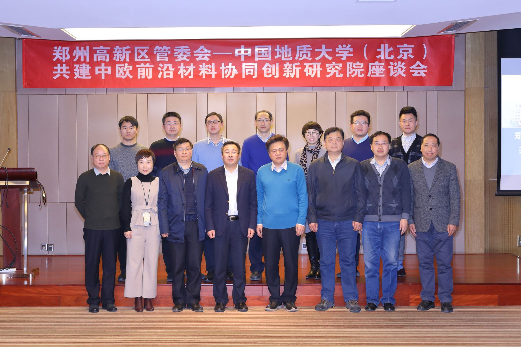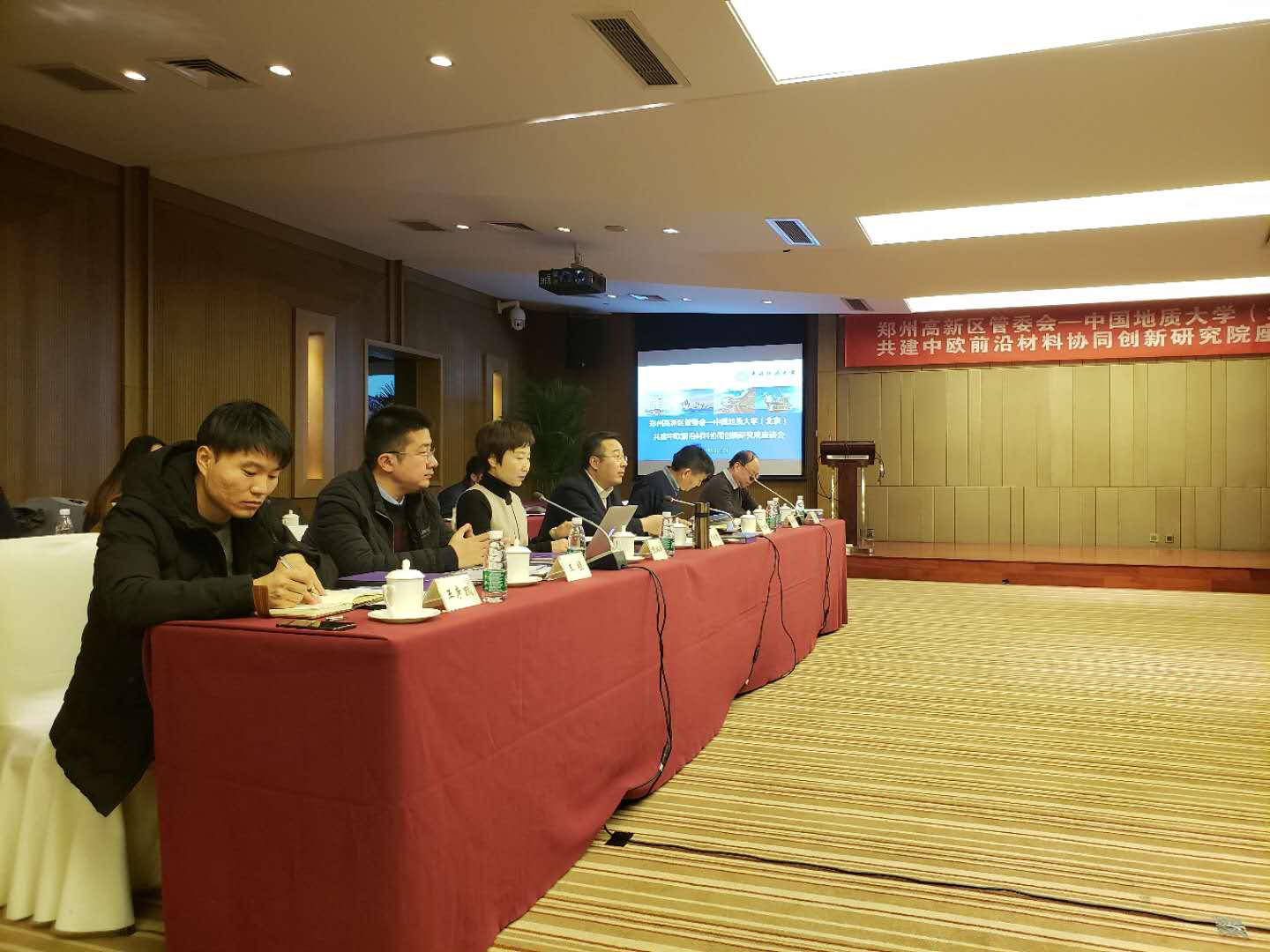 2019年1月9日,“鄭州市高新區(qū)管委會(huì)—中國(guó)地質(zhì)大學(xué)(北京)”共建中歐前沿材料協(xié)同創(chuàng)新研究院座談會(huì)在京召開(kāi)。鄭州高新區(qū)黨工委書(shū)記、管委會(huì)主任王新亭,改革開(kāi)放領(lǐng)導(dǎo)小組副組長(zhǎng)兼辦公室主任鄭彥松、投資促進(jìn)中心主任張煒煒、黨政辦公室副主任魯華雨、投資促進(jìn)中心副主任王楨等赴京參加會(huì)議,中國(guó)地質(zhì)大學(xué)(北京)副校長(zhǎng)萬(wàn)力、校長(zhǎng)助理兼發(fā)展規(guī)劃處處長(zhǎng)于光、科技處處長(zhǎng)趙志丹、珠寶學(xué)院黨委副書(shū)記周彥、科技處副處長(zhǎng)楊曉剛,工程技術(shù)學(xué)院副院長(zhǎng)岳文、王成彪教授等出席會(huì)議,麥斯達(dá)夫首席執(zhí)行官鄭波、高級(jí)副總裁李鵬、鄭州公司總經(jīng)理李寧等參加活動(dòng)。
