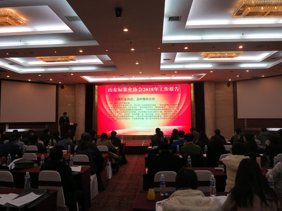 2019年1月11日,山東標(biāo)準(zhǔn)化協(xié)會2018年度年會在濟(jì)南舉行。山東省各地市、區(qū)縣的市場監(jiān)管局(質(zhì)監(jiān)局)標(biāo)準(zhǔn)化工作負(fù)責(zé)同志,省內(nèi)各大企業(yè)、標(biāo)準(zhǔn)化研究機(jī)構(gòu)、標(biāo)準(zhǔn)化技術(shù)委員會等參加會議。