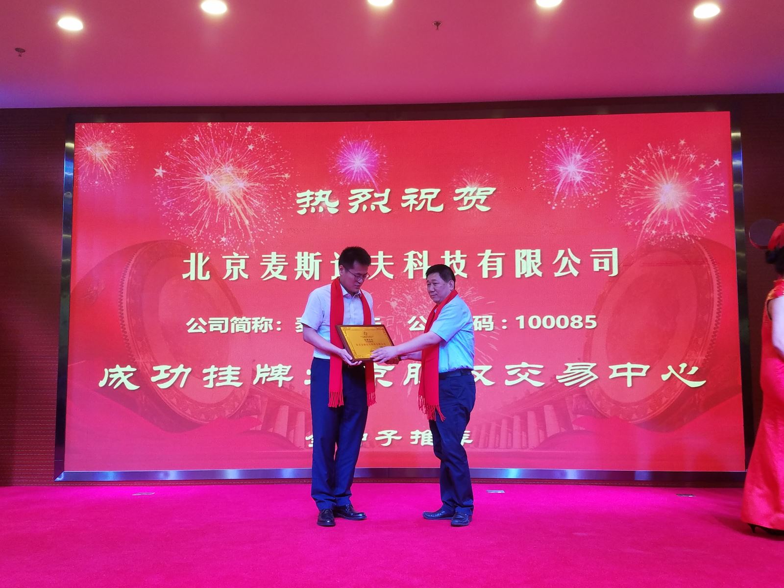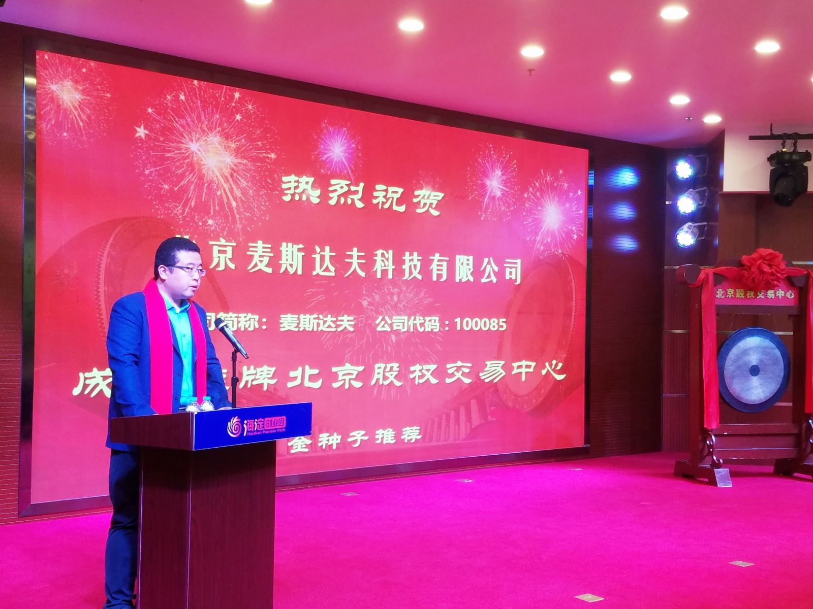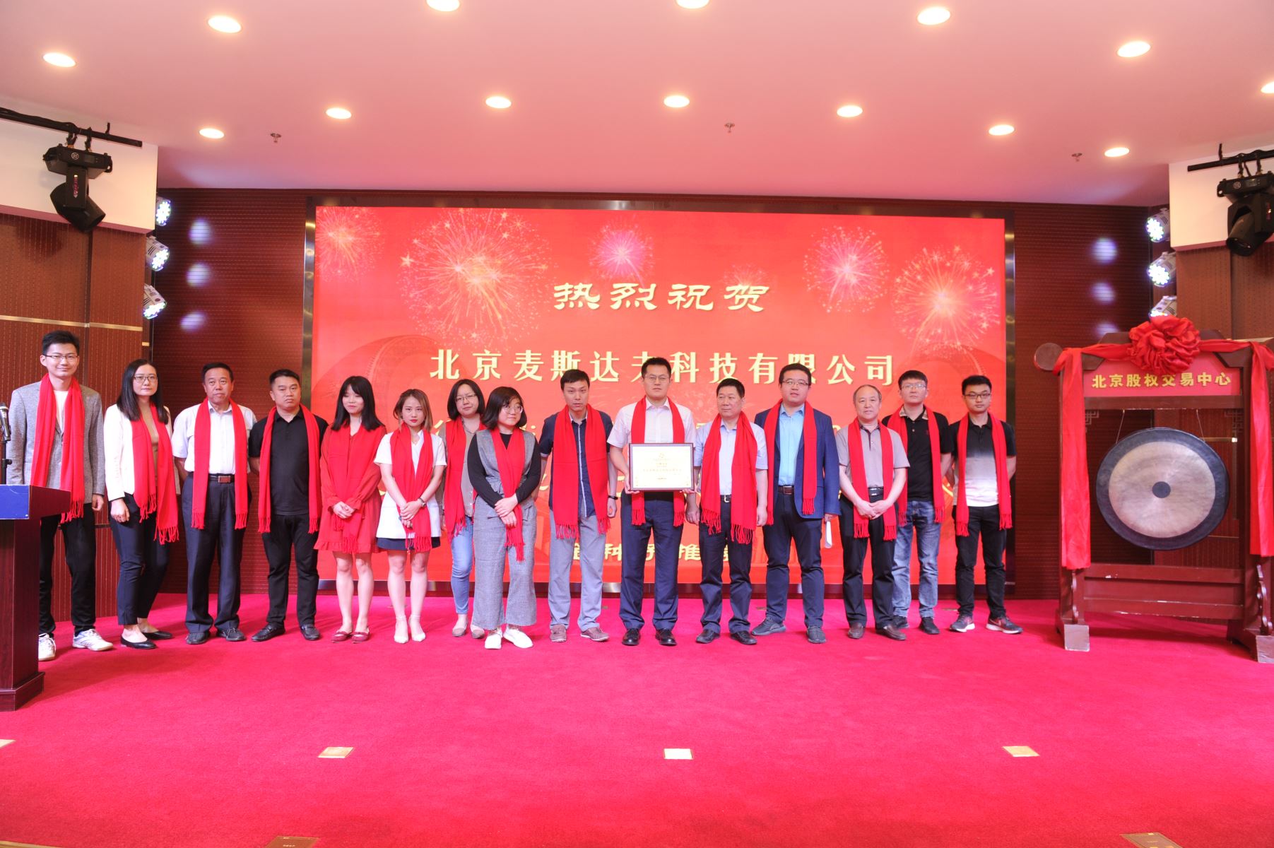 海淀區(qū)投資促進(jìn)局副局長(zhǎng)王春生向麥斯達(dá)夫聯(lián)合創(chuàng)始人王振凱授予科創(chuàng)板牌匾,麥斯達(dá)夫聯(lián)合創(chuàng)始人王超代表公司敲鑼。麥斯達(dá)夫在京全體員工參加授牌、敲鑼儀式。