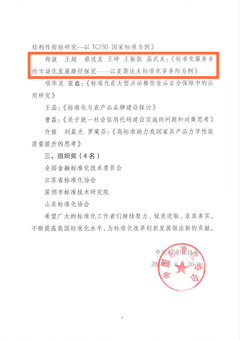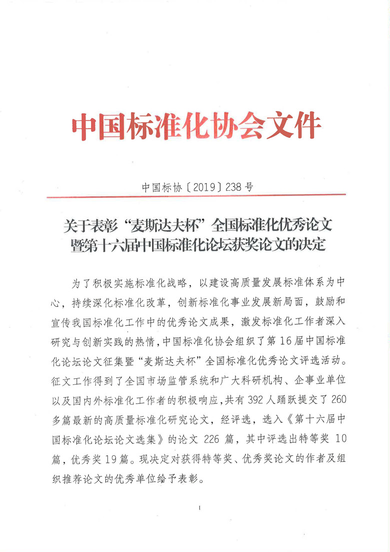我所論文《標準化服務(wù)業(yè)的市場化發(fā)展路徑研究》獲第十六屆中國標準化論壇優(yōu)秀獎