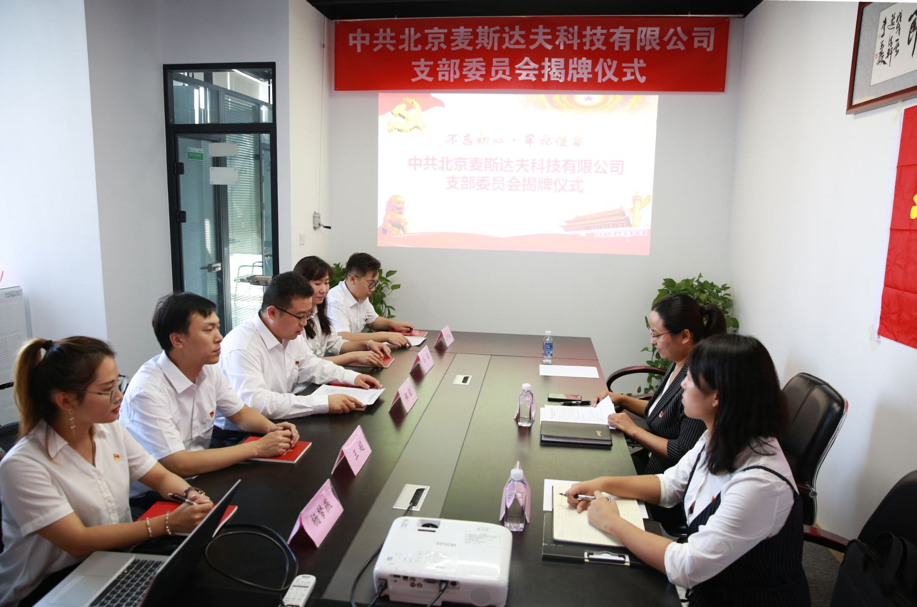 2019年9月25日,中共北京麥斯達夫科技有限公司支部委員會揭牌儀式在麥斯達夫北京總部舉行。北京市海淀區(qū)蘇家坨鎮(zhèn)黨委委員、組織部長郭加梅,鎮(zhèn)黨群活動服務中心張海燕參加揭牌儀式。麥斯達夫標準化事務所鄭波、王超、張蕾、楊夢燕、張欣琪、王釗柱六名在京黨員以及入黨積極分子參加揭牌儀式。儀式由鄭波主持。