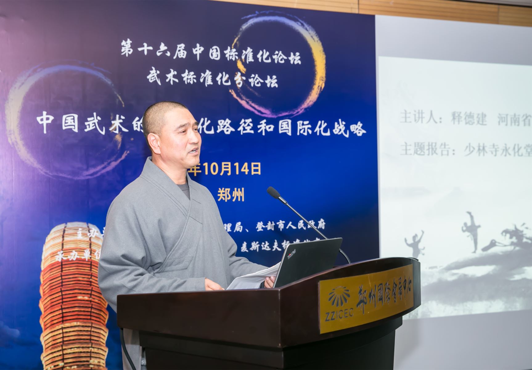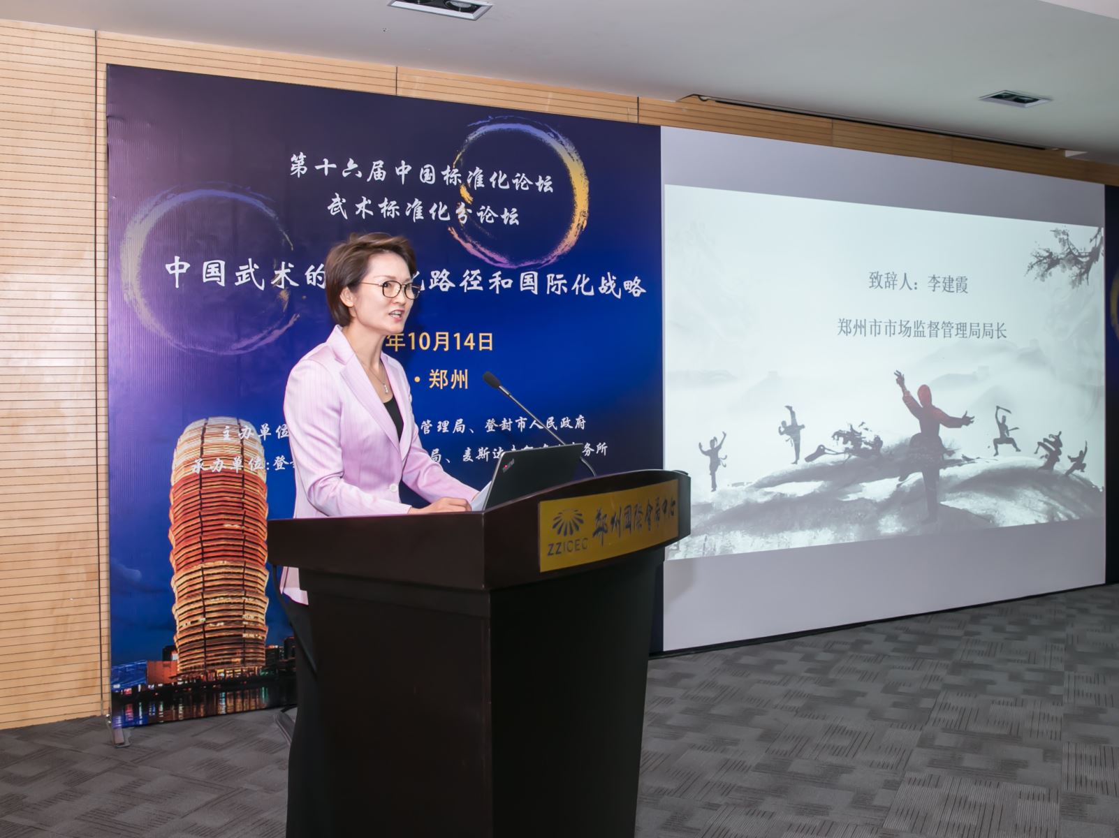 2019年10月14日,由中國標(biāo)準(zhǔn)化協(xié)會、鄭州市人民政府主辦,鄭州市市場監(jiān)督管理局承辦的第十六屆中國標(biāo)準(zhǔn)化論壇在鄭州國際會展中心舉行。繼14日上午的論壇開幕式暨主旨報告之后,武術(shù)標(biāo)準(zhǔn)化分論壇在會展中心102會議室拉開帷幕。本次武術(shù)標(biāo)準(zhǔn)化分論壇由鄭州市市場監(jiān)督管理局、登封市人民政府主辦,登封市市場監(jiān)督管理局和麥斯達夫標(biāo)準(zhǔn)化事務(wù)所承辦。