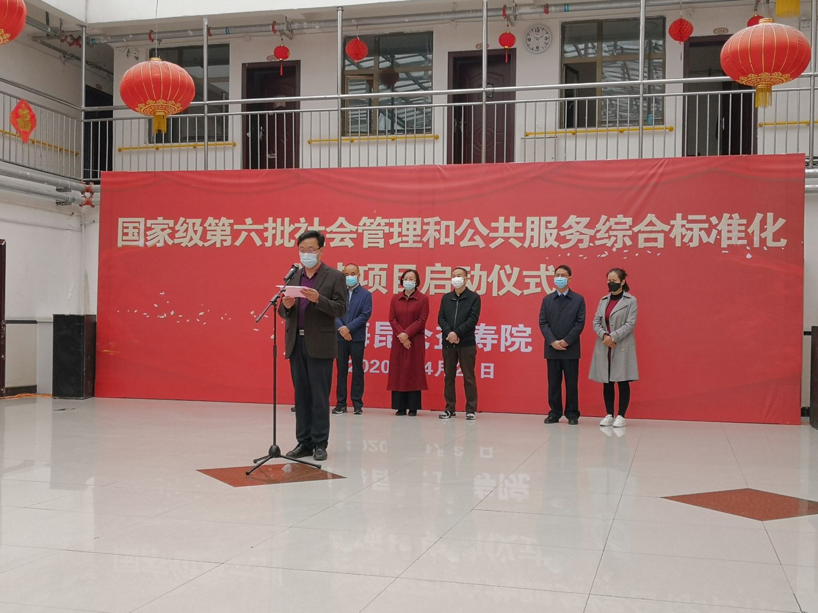 2020年4月21日,第六批國家級社會管理和公共服務(wù)綜合標(biāo)準(zhǔn)化試點項目啟動儀式在青海昆侖益壽院召開。青海省市場監(jiān)督管理局標(biāo)準(zhǔn)化處處長秦華成、副處長池曉虹、主任科員王光明,青海省民政廳養(yǎng)老服務(wù)處一級調(diào)研員肖瑄,西寧市市場監(jiān)督管理局副局長丁軍,西寧市市場監(jiān)督管理局標(biāo)準(zhǔn)化與認證認可監(jiān)督管理科科長李永剛、三級主任科員馬振華,西寧市民政局養(yǎng)老服務(wù)科科長靳家波,西寧市城北區(qū)民政局養(yǎng)老服務(wù)科科長趙永蓮,西寧市城北區(qū)大堡子市場監(jiān)督管理所領(lǐng)導(dǎo)等出席活動。青海昆侖益壽院院長李進、院內(nèi)全體職工,麥斯達夫標(biāo)準(zhǔn)化事務(wù)所首席執(zhí)行官鄭波參加啟動儀式。啟動儀式由昆侖益壽院項目部部長張振娟主持。