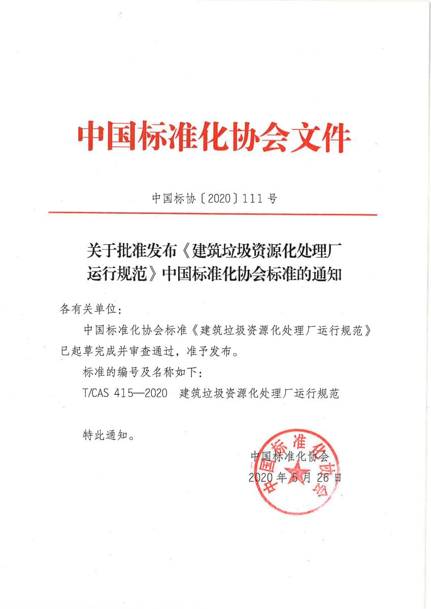 2020年5月26日,由麥斯達夫標準化事務所主導編制的團體標準《建筑垃圾資源化處理廠運營規(guī)范》(T/CAS 415-2020)正式獲批發(fā)布。標準正式發(fā)布文本附后。