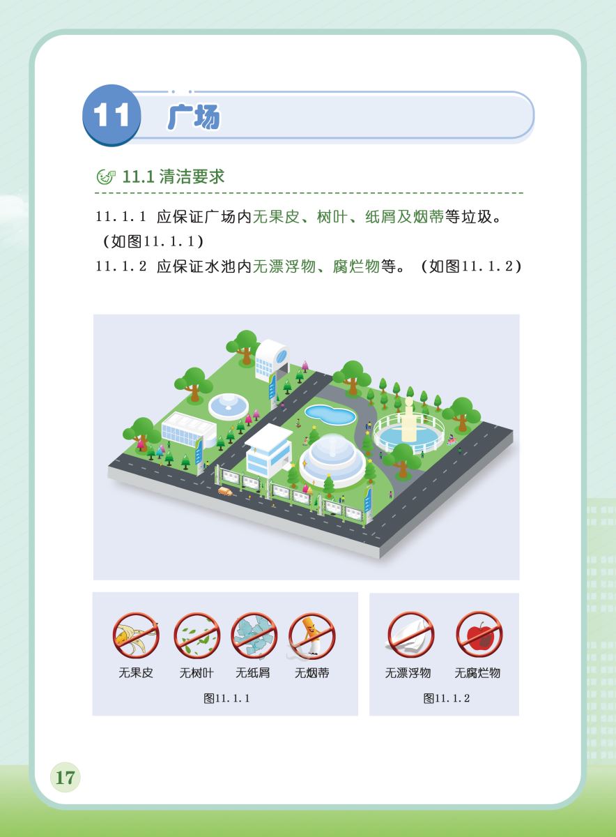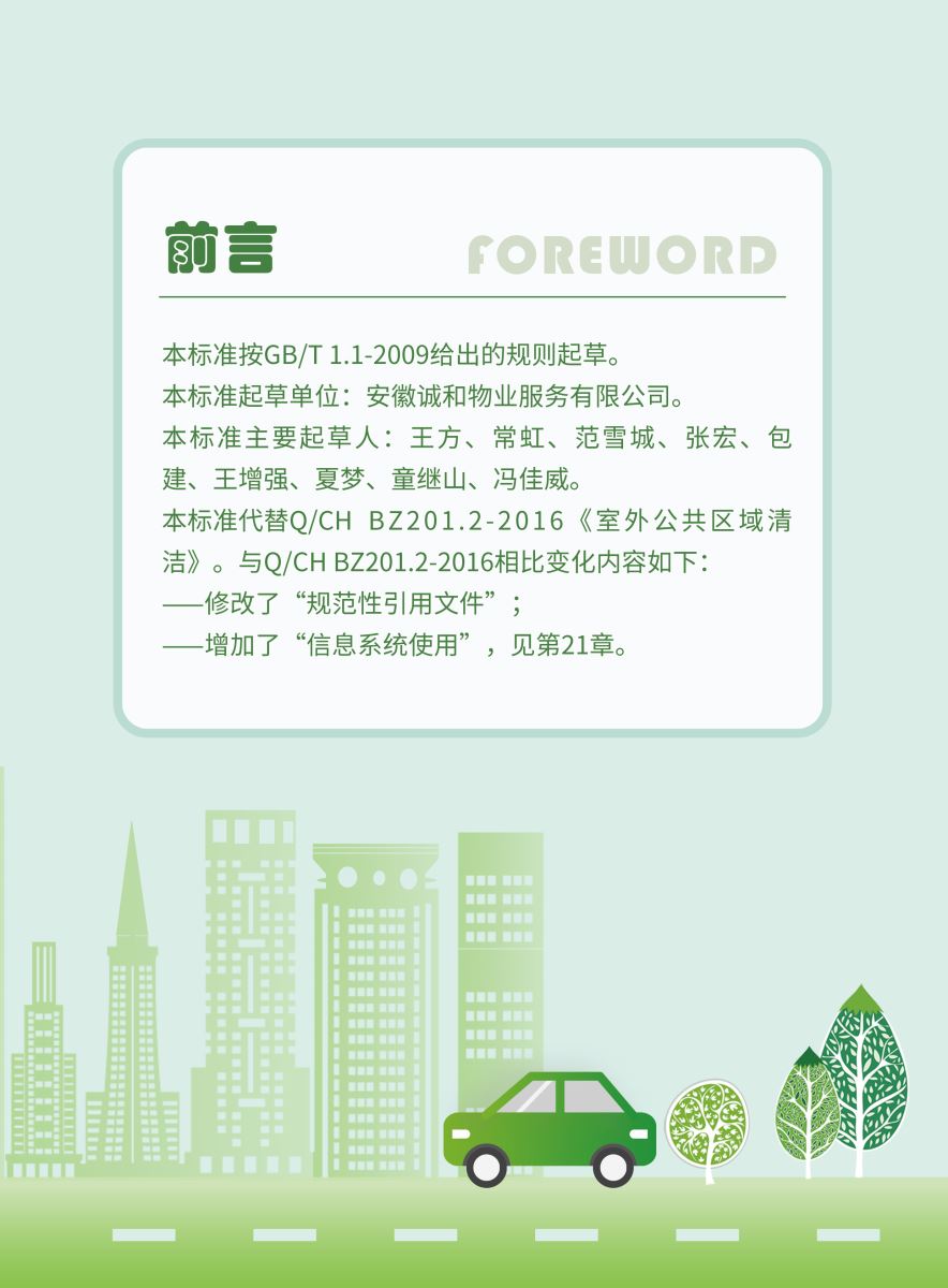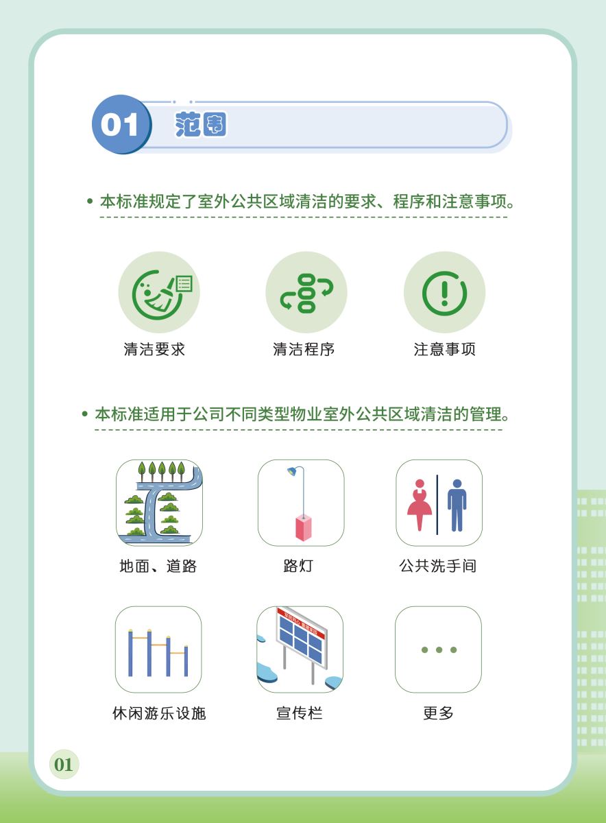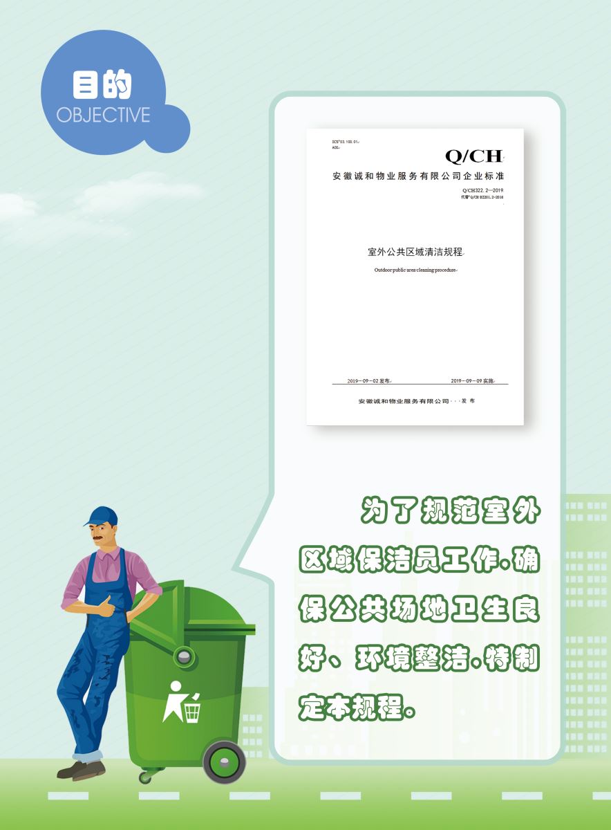 以下展示《室外公共區(qū)域清潔規(guī)程》團(tuán)體標(biāo)準(zhǔn)圖解版,以供業(yè)內(nèi)同仁閱覽,不足之處,敬請批評指正。