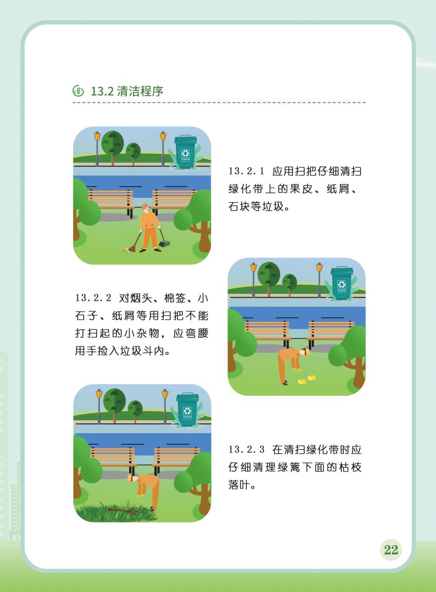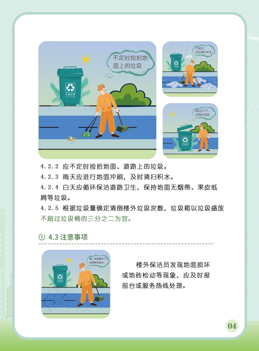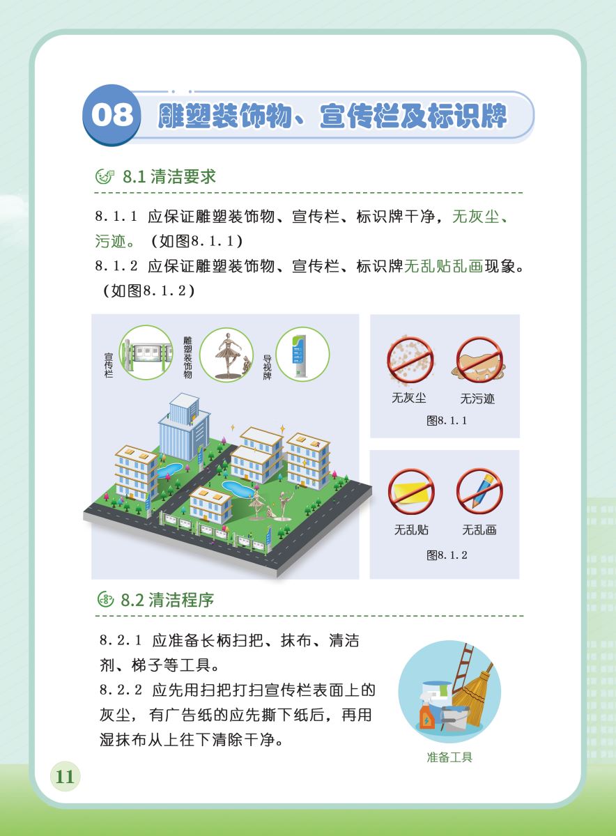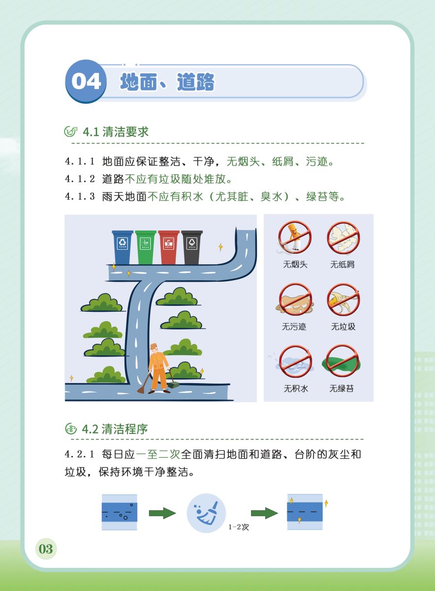 以下展示《室外公共區(qū)域清潔規(guī)程》團(tuán)體標(biāo)準(zhǔn)圖解版,以供業(yè)內(nèi)同仁閱覽,不足之處,敬請批評指正。