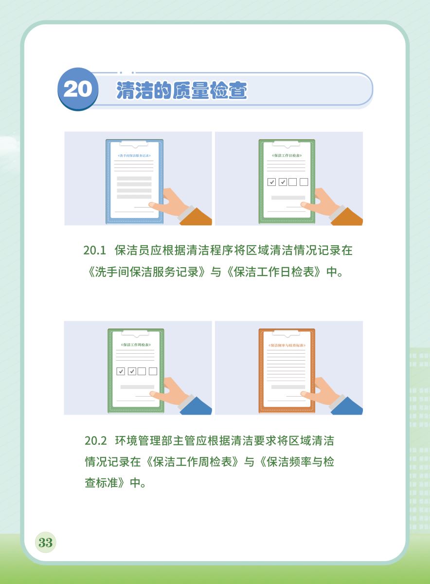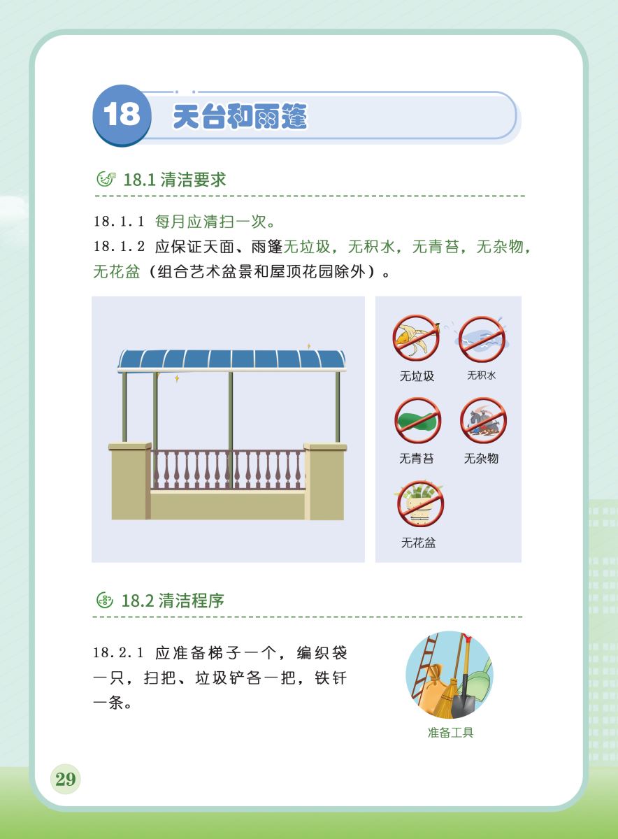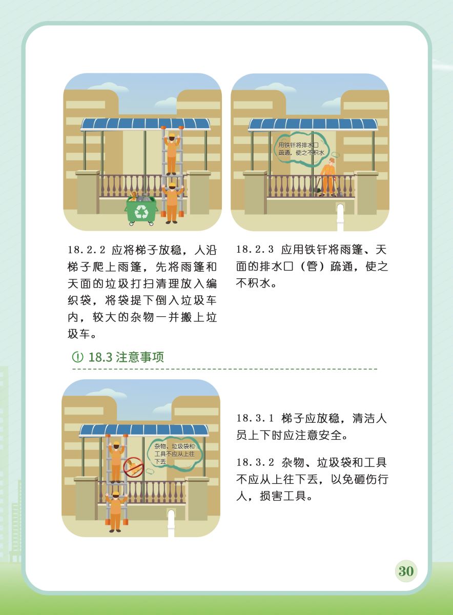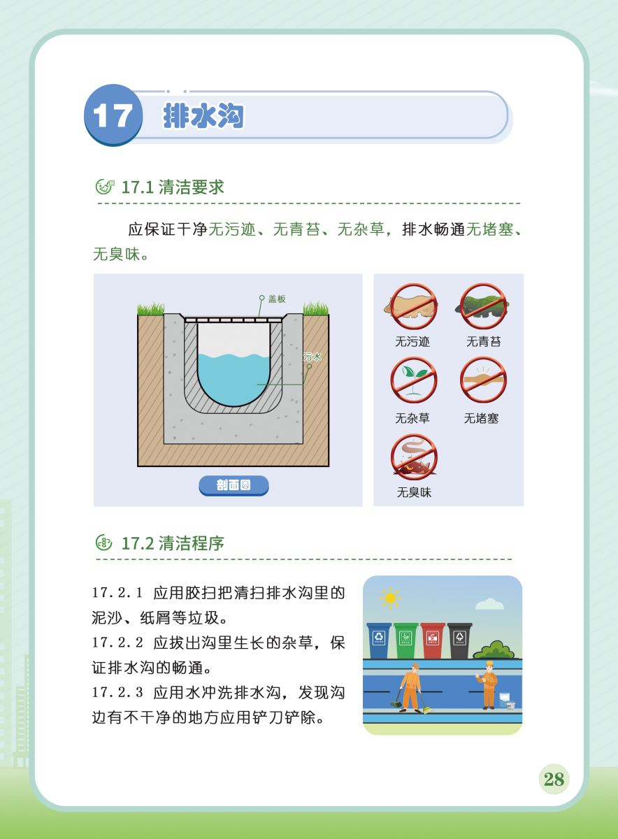 以下展示《室外公共區(qū)域清潔規(guī)程》團(tuán)體標(biāo)準(zhǔn)圖解版,以供業(yè)內(nèi)同仁閱覽,不足之處,敬請批評指正。