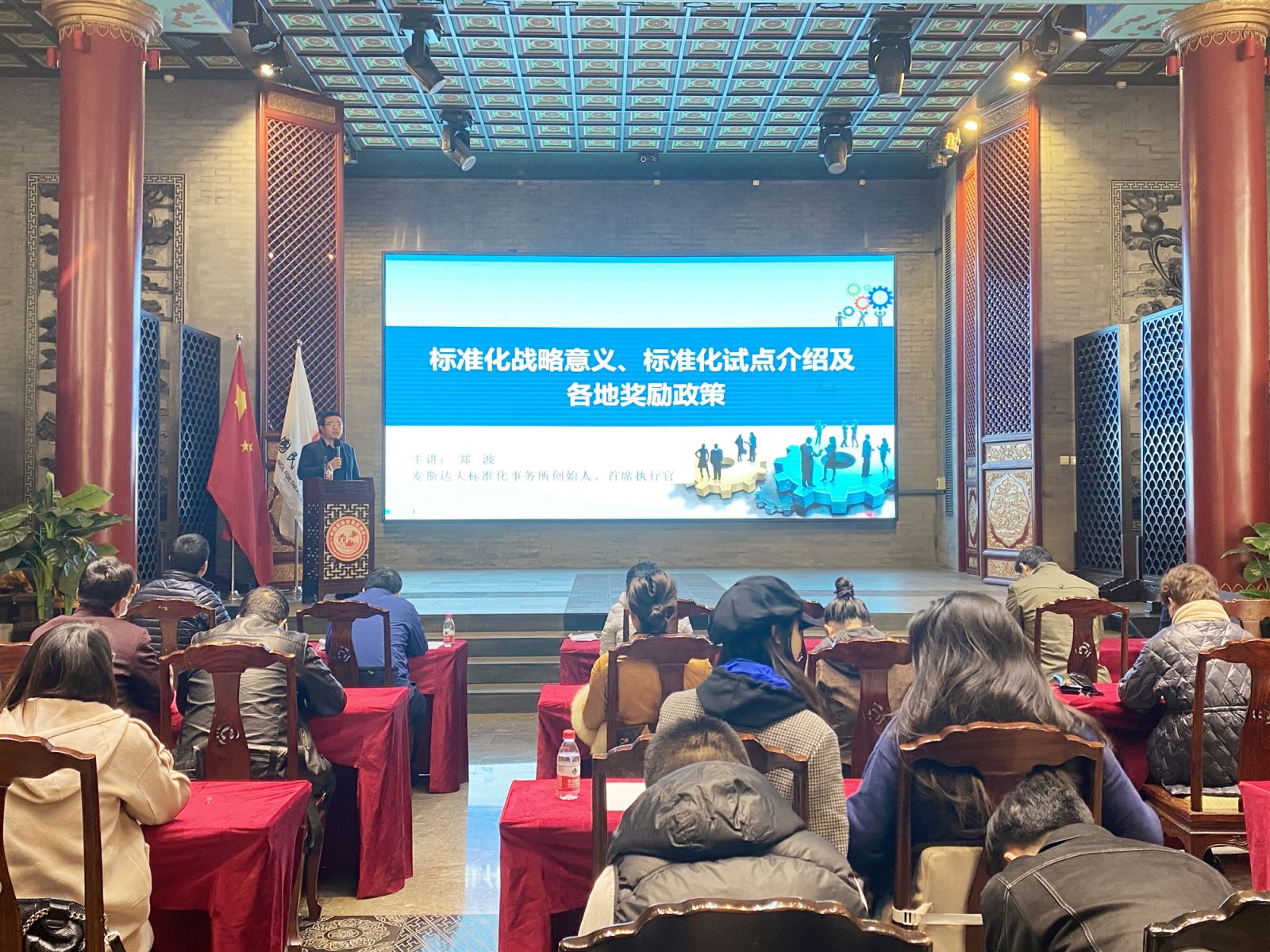 麥斯達(dá)夫標(biāo)準(zhǔn)化事務(wù)所創(chuàng)始人、首席執(zhí)行官鄭波就標(biāo)準(zhǔn)化的戰(zhàn)略意義、標(biāo)準(zhǔn)化試點(diǎn)介紹及各地獎(jiǎng)勵(lì)政策進(jìn)行了講解和分享。董春松就中國(guó)一鄉(xiāng)一品標(biāo)準(zhǔn)化工作程序及實(shí)踐進(jìn)行了經(jīng)驗(yàn)分享。