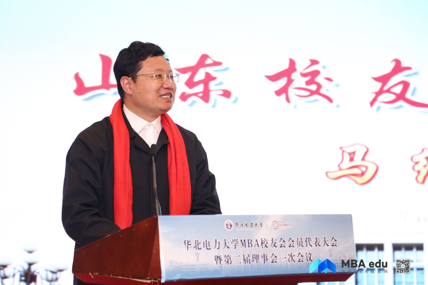 華北電力大學MBA校友會第一屆理事會秘書長柏冰做工作報告,并對新一屆MBA校友會理事會寄予深切祝福。