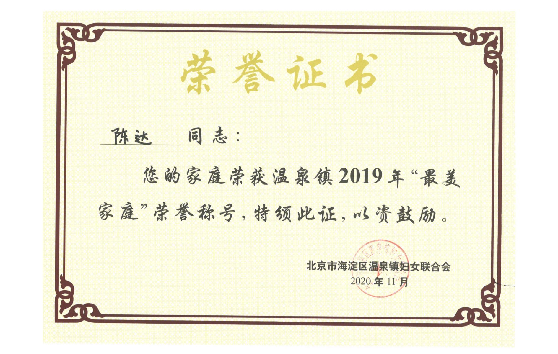 近日,麥斯達(dá)夫王超、王釗柱、陳達(dá)、謝小東榮獲2019年“最美家庭”榮譽(yù)稱號(hào)。