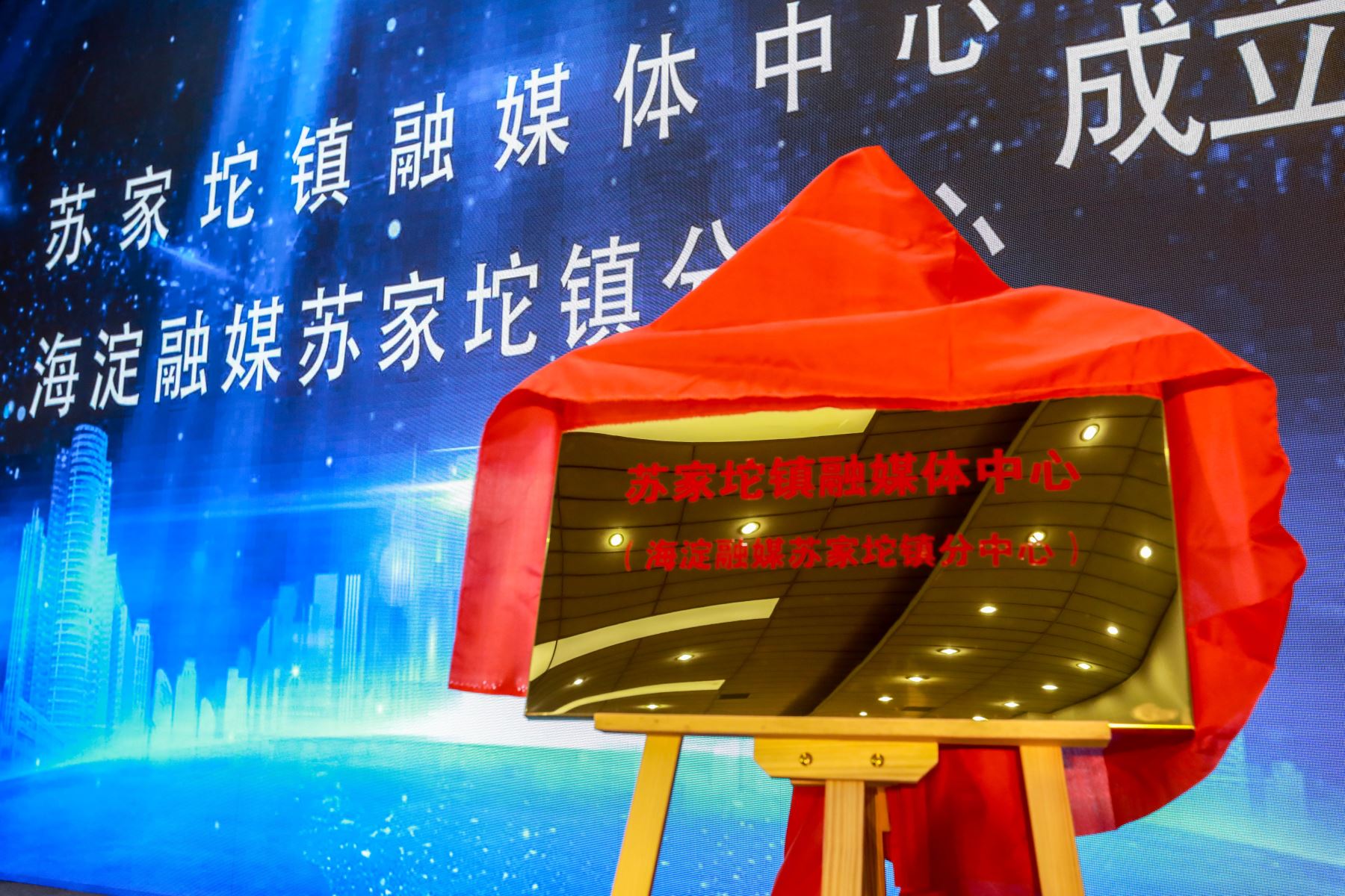 會(huì)議播放了海淀區(qū)融媒體中心蘇家坨分中心宣傳視頻后,佟志偉和張文濤一同為海淀區(qū)融媒體中心蘇家坨分中心揭牌。