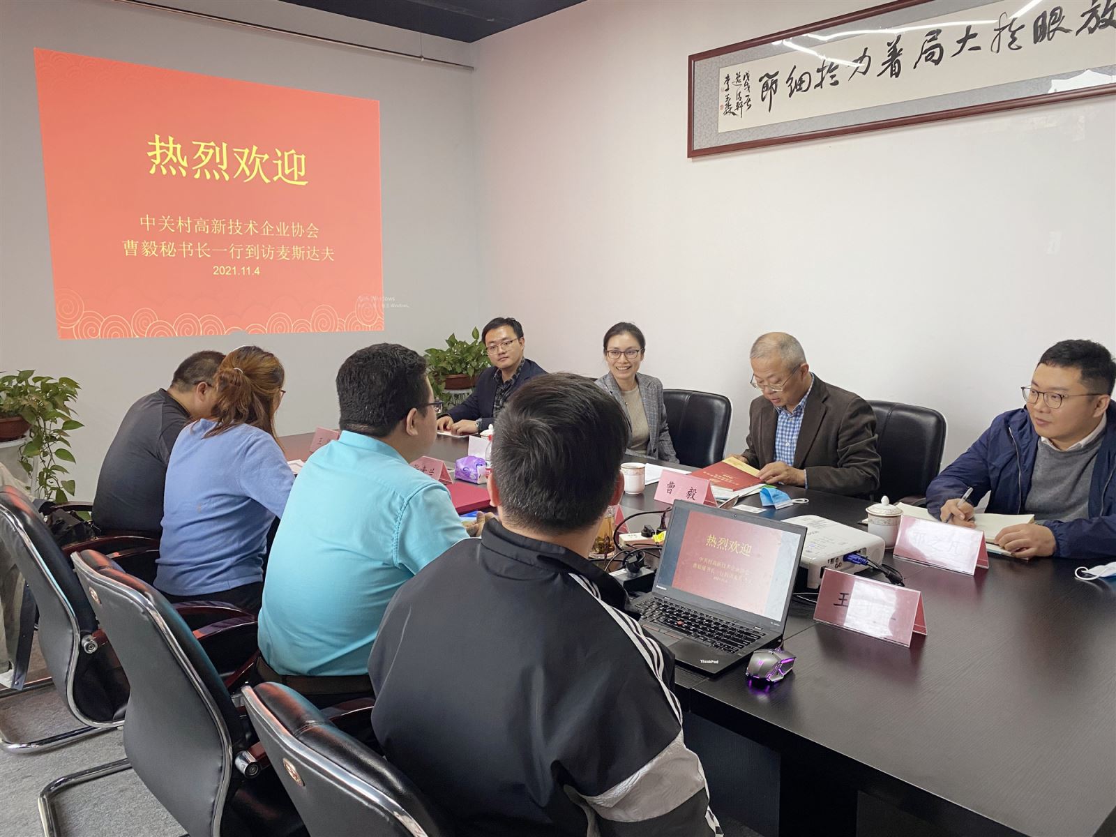 2021年11月4日,中關(guān)村高新技術(shù)企業(yè)協(xié)會(huì)常務(wù)副會(huì)長、秘書長曹毅,秘書長助理郭佳、鄧之凡,科技服務(wù)專委會(huì)工作組李萬鵬一行蒞臨交流。麥斯達(dá)夫首席執(zhí)行官鄭波、市場總監(jiān)王釗柱、財(cái)務(wù)經(jīng)理張素蘭參加會(huì)見。