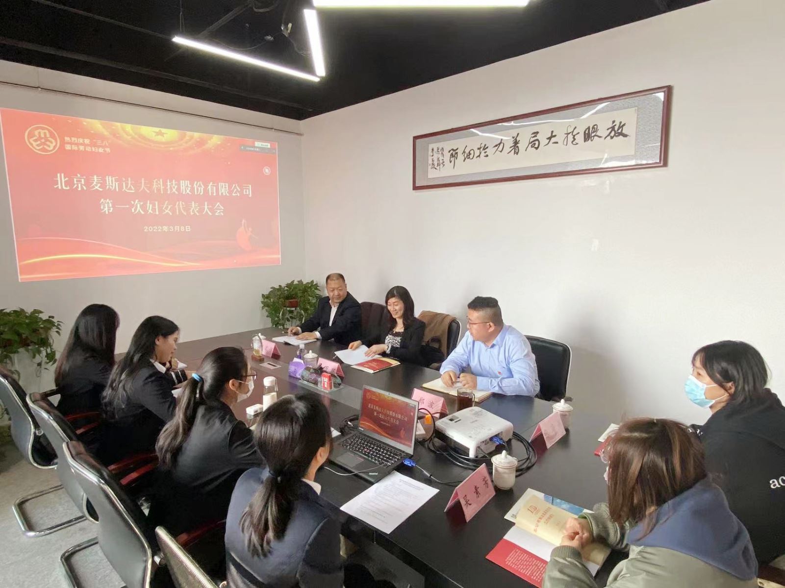 根據(jù)《中華人民共和國婦女聯(lián)合會工作章程》規(guī)定,經(jīng)報海淀區(qū)蘇家坨鎮(zhèn)婦聯(lián)同意,2022年3月8日,北京麥斯達夫科技股份有限公司召開第一次婦女代表大會。鎮(zhèn)婦聯(lián)副主席張萬環(huán),麥斯達夫公司黨支部書記鄭波、黨建指導員郝宏強出席會議,公司16名女職工代表參加會議。為響應國家疫情防控號召,本次會議采用線上線下相結(jié)合的形式召開。會議由崔永花主持。