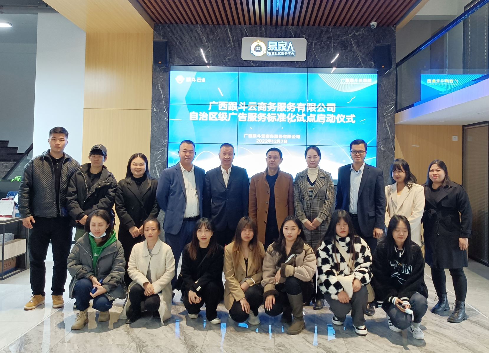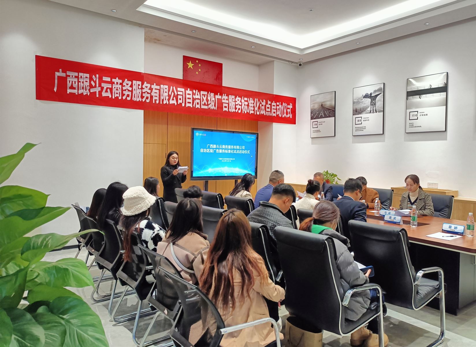 2022年12月7日,廣西壯族自治區(qū)級標(biāo)準(zhǔn)化試點項目——廣西跟斗云商務(wù)服務(wù)有限公司廣告服務(wù)標(biāo)準(zhǔn)化試點啟動儀式在廣西跟斗云商務(wù)服務(wù)有限公司會議室召開。南寧市市場監(jiān)督管理局四級調(diào)研員臧偉洲、標(biāo)準(zhǔn)化科科長馬霞,青秀區(qū)市場監(jiān)督管理局副局長劉成偉,廣西跟斗云商務(wù)服務(wù)有限公司總經(jīng)理遲玉成,跟斗云集團(tuán)事業(yè)二部負(fù)責(zé)人黃婭婕,工廠運營總監(jiān)廖煒瑩等人出席會議。跟斗云集團(tuán)其他有關(guān)部門及門店負(fù)責(zé)人參加會議。會議由廣西跟斗云商務(wù)服務(wù)有限公司人事主管覃嬌主持。