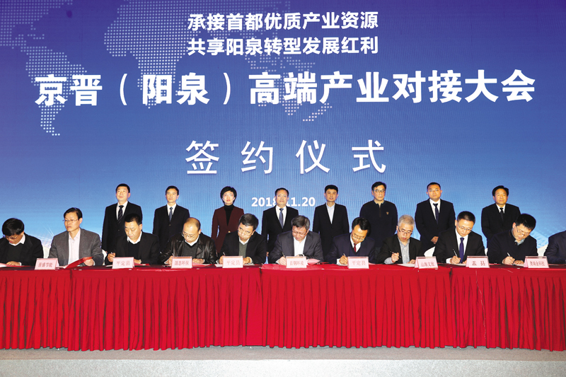 | 圖為京晉(陽泉)高端產(chǎn)業(yè)對接大會簽約儀式現(xiàn)場。鄭 雷攝 |