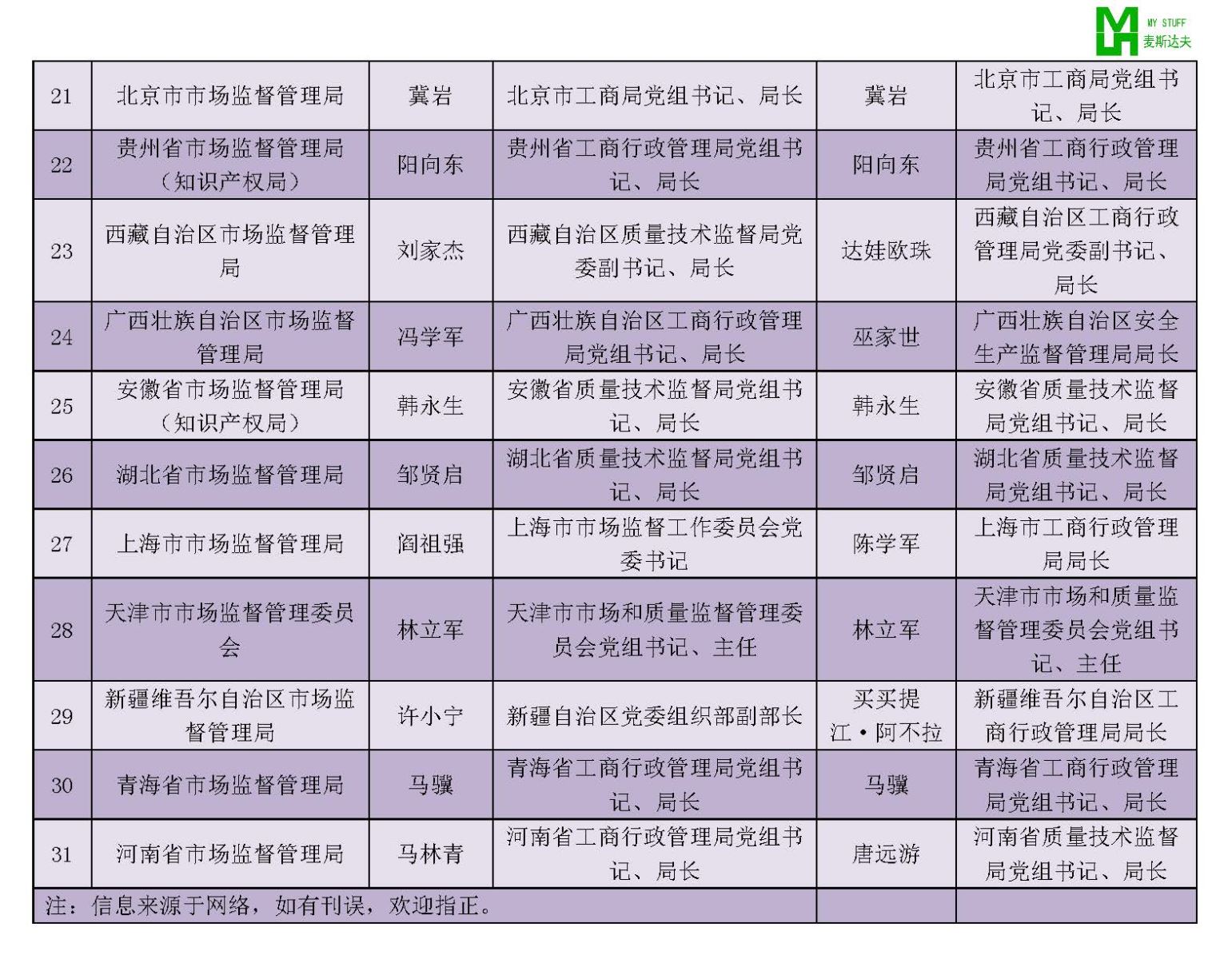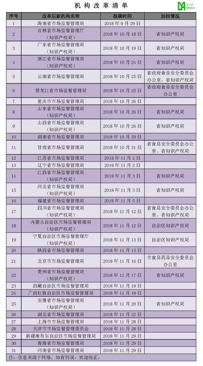 對于各省級市場機構(gòu)改革后名稱、掛牌時間、加掛情況、以及機構(gòu)負責(zé)人等做了詳細梳理,供大家參閱。