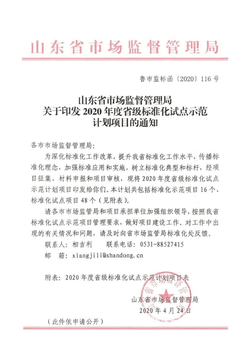 山東省市場(chǎng)監(jiān)督管理局關(guān)于印發(fā)2020年度省級(jí)標(biāo)準(zhǔn)化試點(diǎn)示范計(jì)劃項(xiàng)目的通知