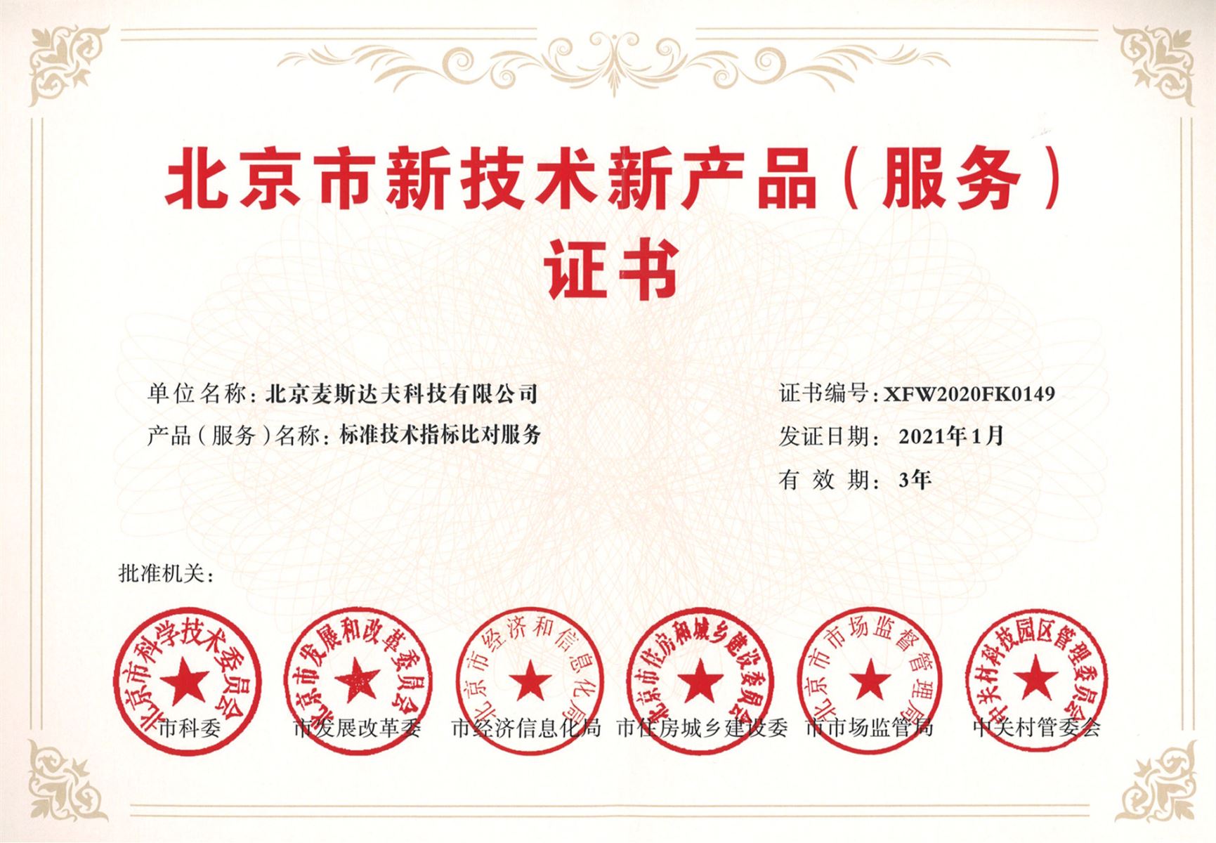 麥斯達夫標準化事務所自主研發(fā)的"標準技術(shù)指標比對服務"成功入選第十三批北京市新技術(shù)新產(chǎn)品(服務)。