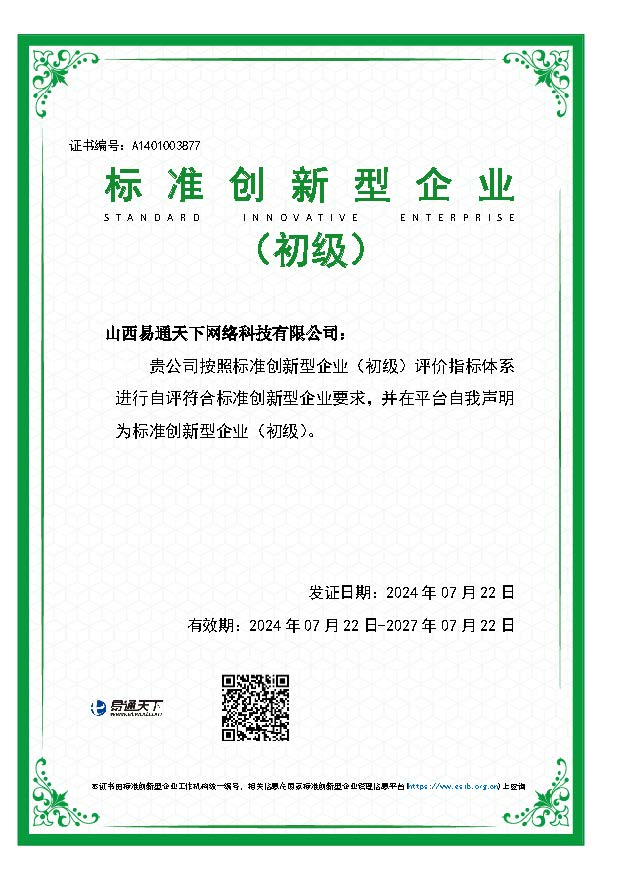 山西易通天下網(wǎng)絡(luò)科技有限公司獲評標準創(chuàng)新型企業(yè)