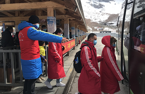 志愿者積極幫助行動困難游客,助力圓夢大美長白。